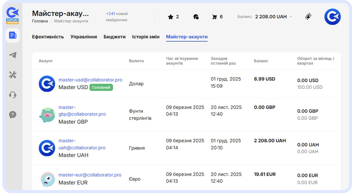 Майстер-акаунт у Collaborator: ефективне управління клієнтами, командою та бюджетами